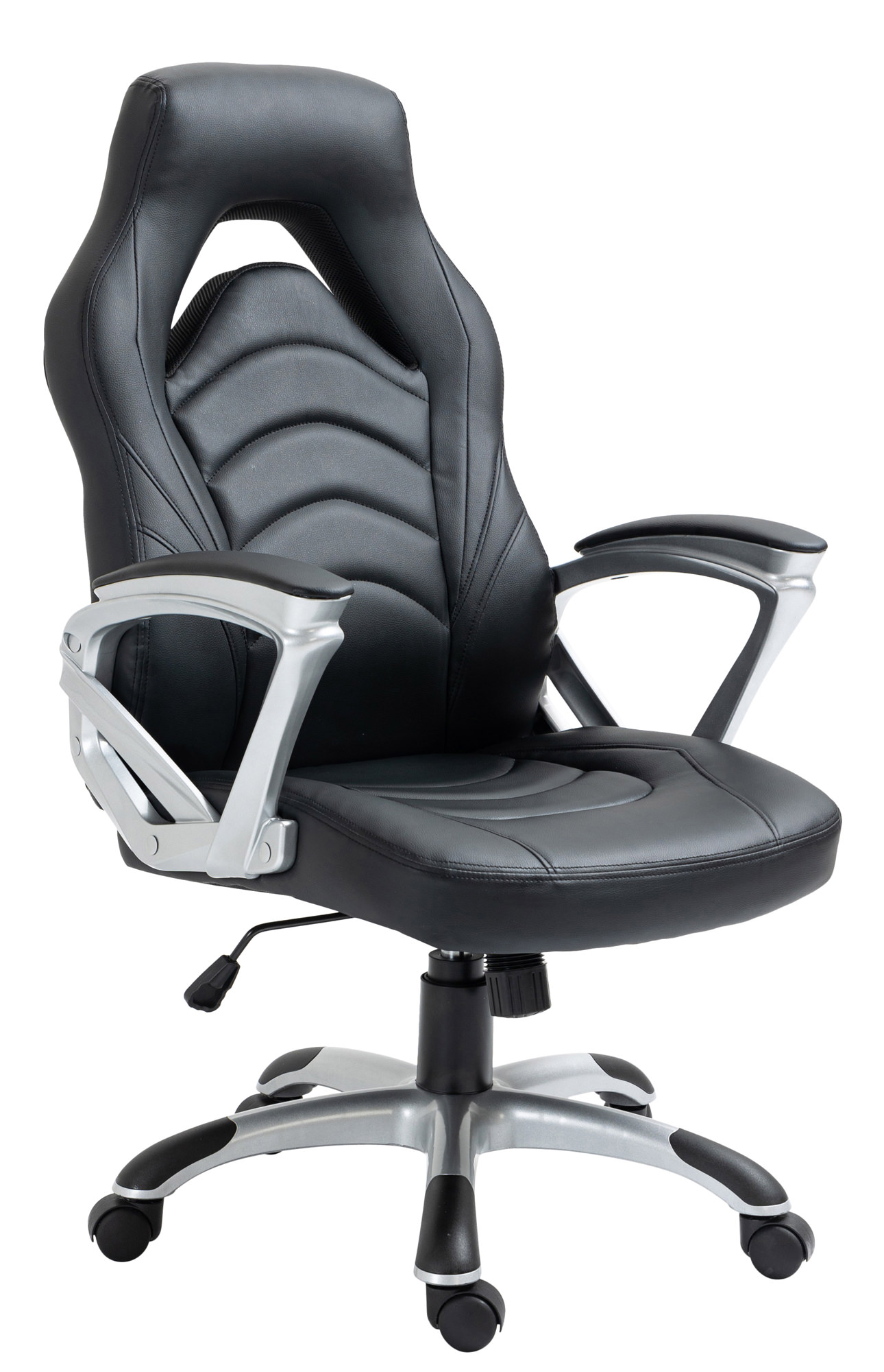 To krzesło biurowe o atrakcyjnym, sportowym designie łączy w sobie funkcjonalność i wygodę w najlepszy możliwy sposób. Przyjemnie tapicerowane siedzisko z wielokolorową imitacją skóry zapewnia nie tylko zdrową pozycję siedzącą, ale także długotrwały komfort. Krzesło stoi stabilnie na plastikowej ramie i porusza się na pięciu płynnie poruszających się kółkach do twardych podłóg. Wysokość siedziska można regulować bezstopniowo.
